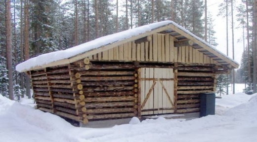 Puuvarastossa säilytetään kuivaa polttopuuta käyttäjille. Kuva T Röpetti